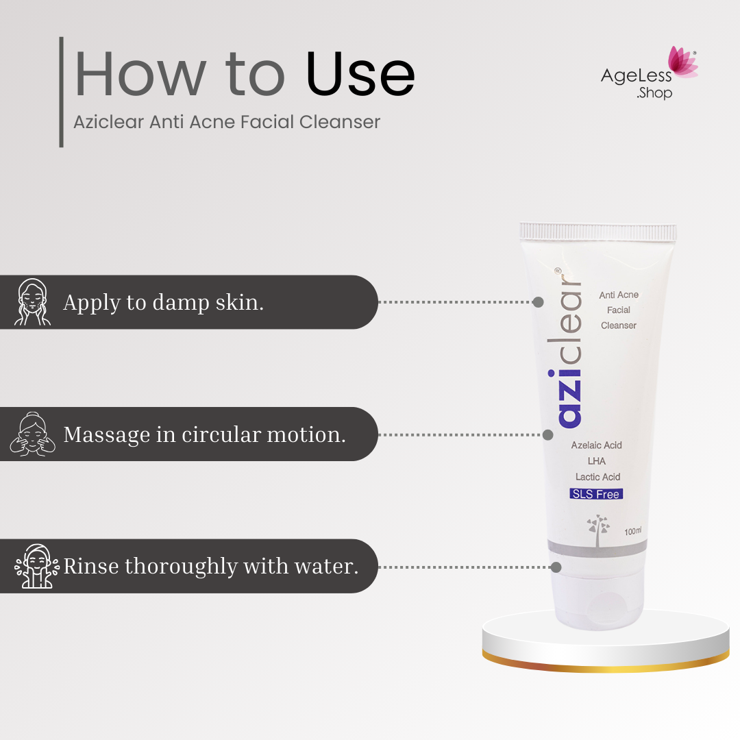 Apply a small amount of Aziclear Anti Acne Facial Cleanser to your hands and lather it up.