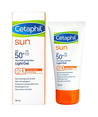 Apply a small amount of Cetaphil Sun SPF 50+ Light Gel to face and neck.