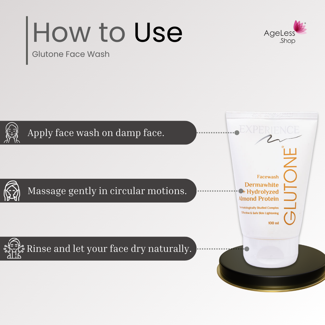 Wet your face, then apply Glutone Face Wash, working it into a foamy lather.